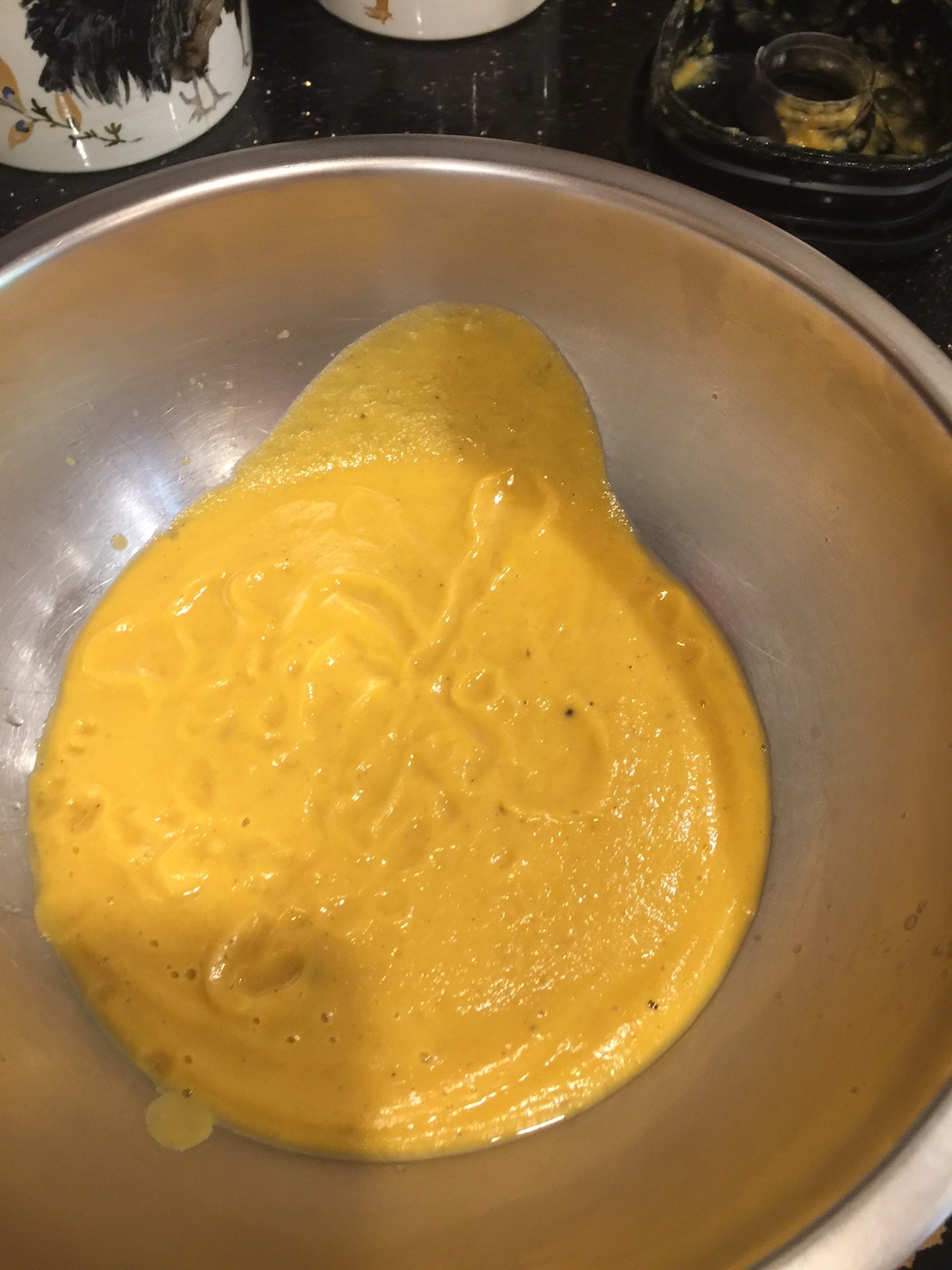 In a Large bowl, whisk together the egg yolks, butter, milk, rum, lime zest, lime juice and passion fruit puree, and pulp until fully combined.