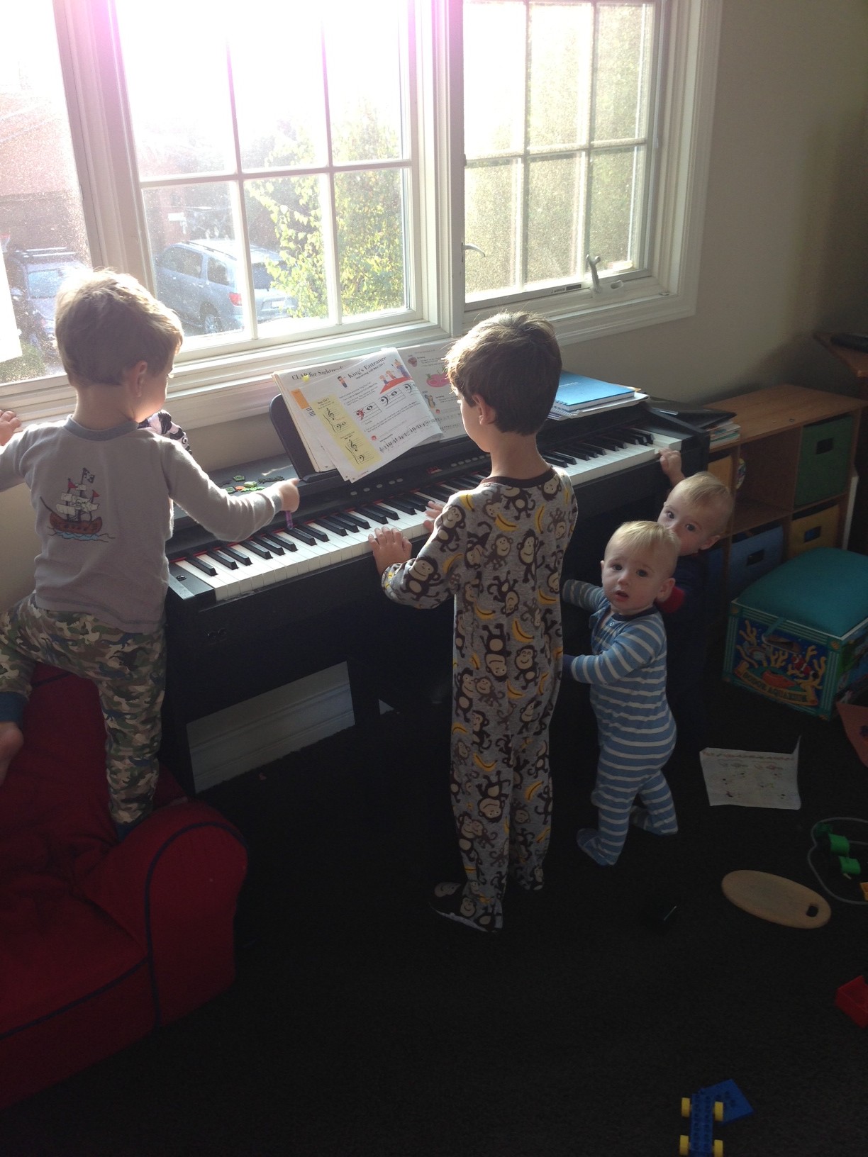 Here are some divine pictures of our little ones – holiday times are so fabulous – the children get SOOOO excited! And music is a large part of that – here the four grandsons are participating in a musical early morning serenade!