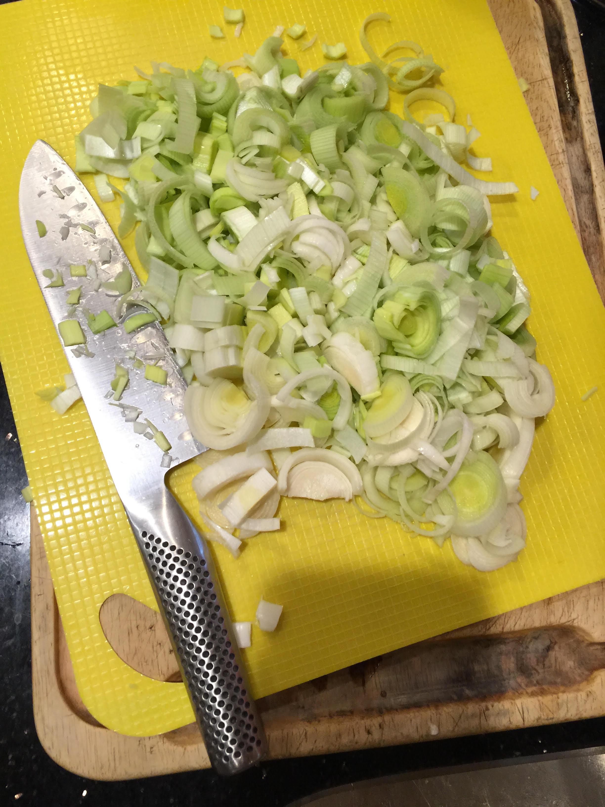 - Leeks ( 3) chopped ( here they are growing in the picture below!!)