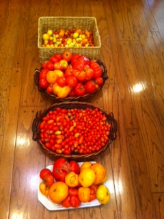 - 1 pint of cherry tomatoes cut in half ( you can see that we have a plethora of tomatoes to choose from)