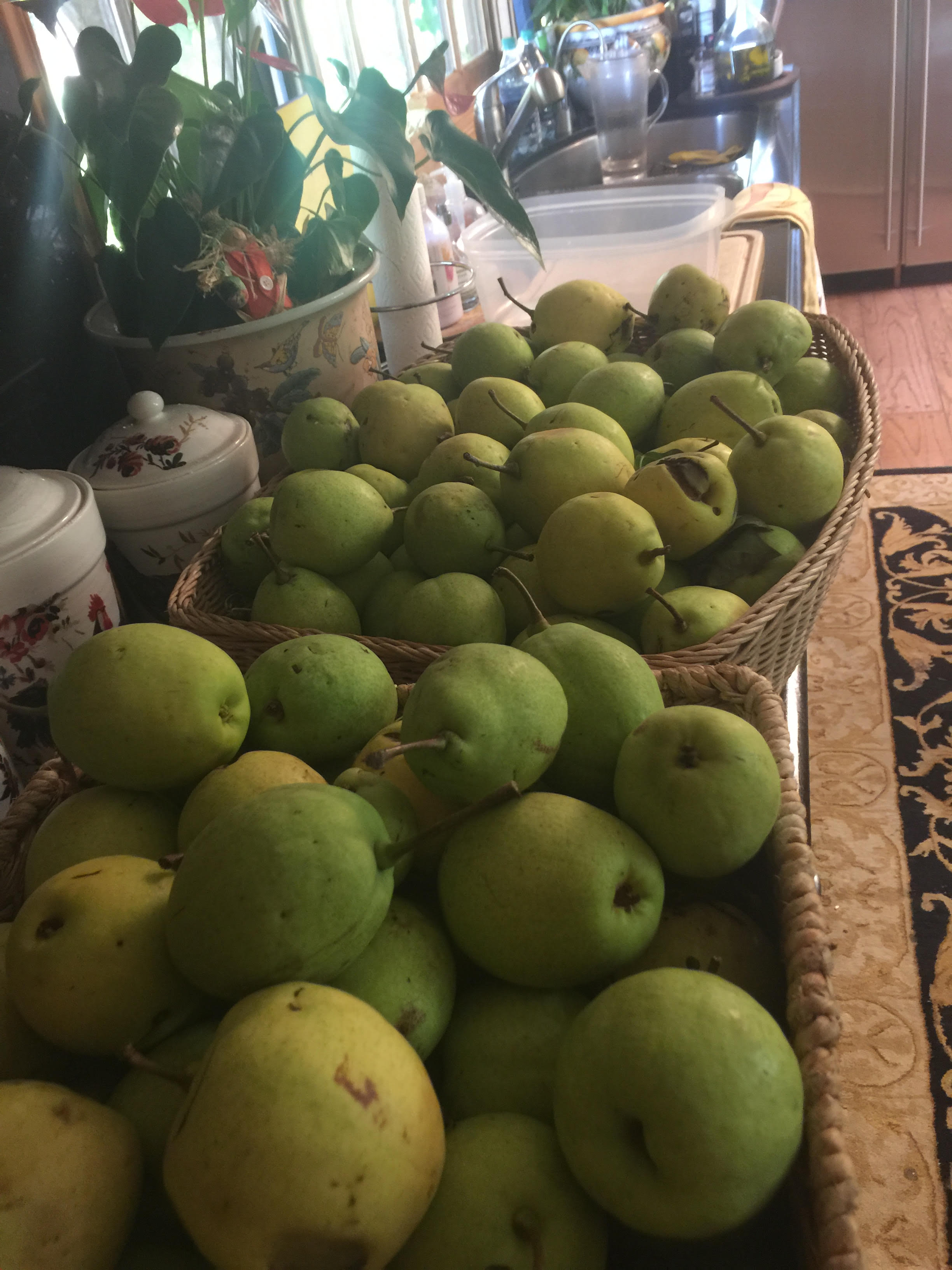 It has been a great year for tomatoes – here are some giant ones! And the pear crop has been amazing.We have finally tented all our fruit trees and so have figs, peaches, etc in great amounts finally as we beat back the critters who normally get them all!