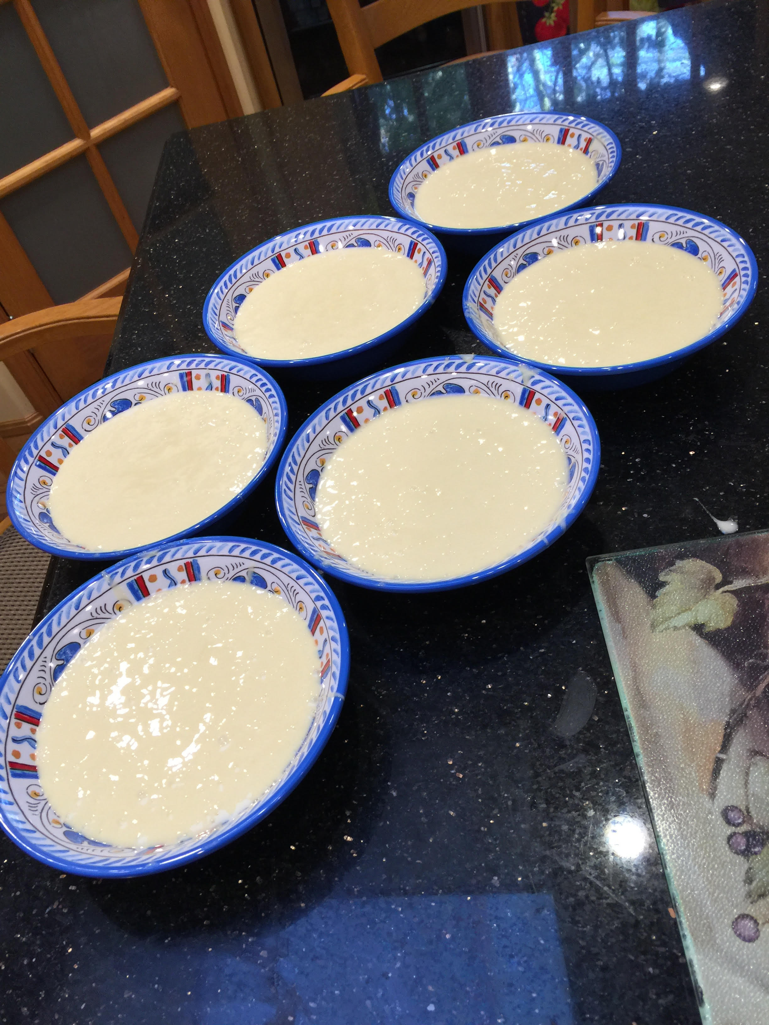 Putting the vanilla batter into separate dishes