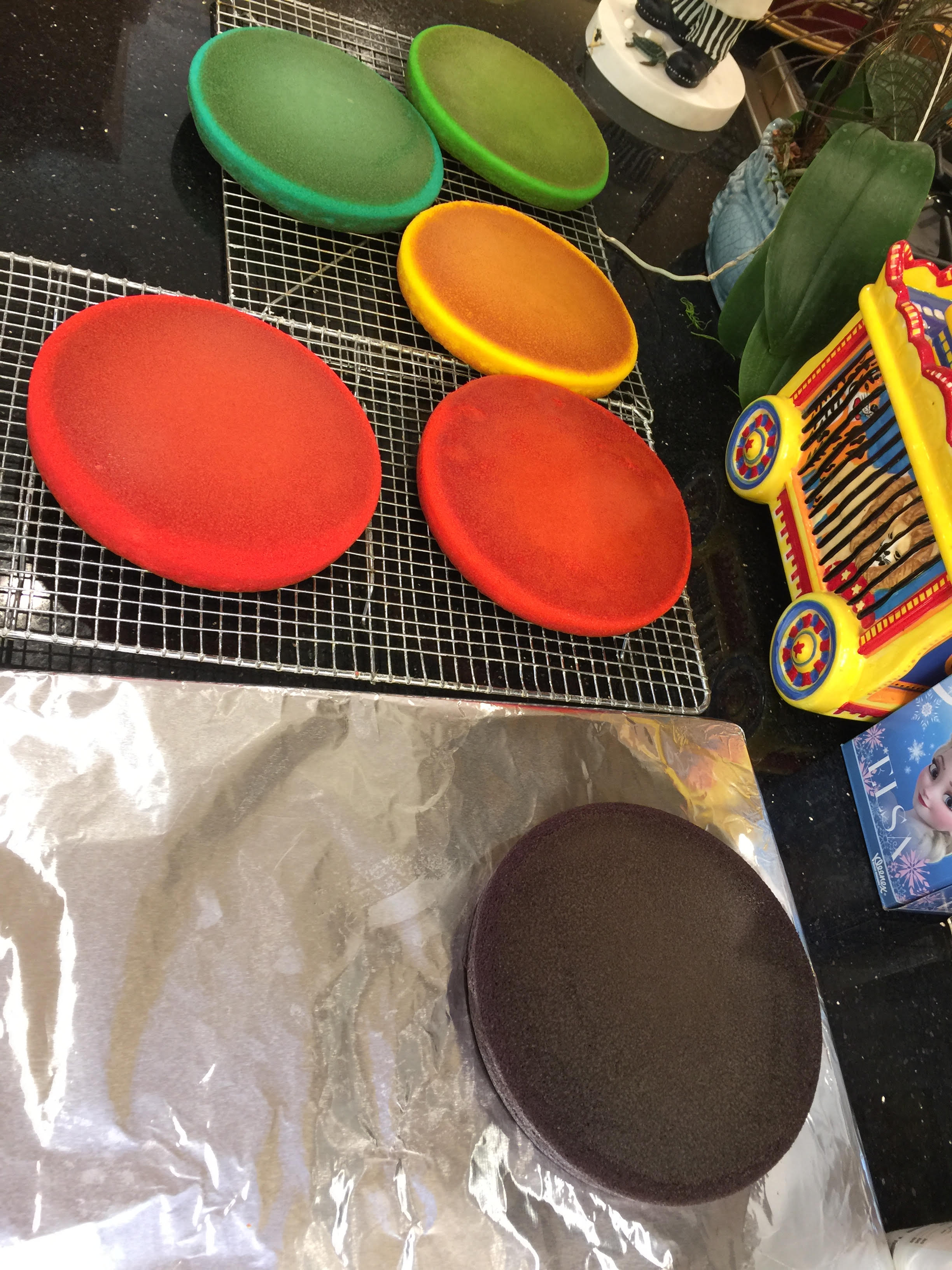 Jonah Rainbow cakes unfrosted 6 layers unassembled -2016 7th bdat