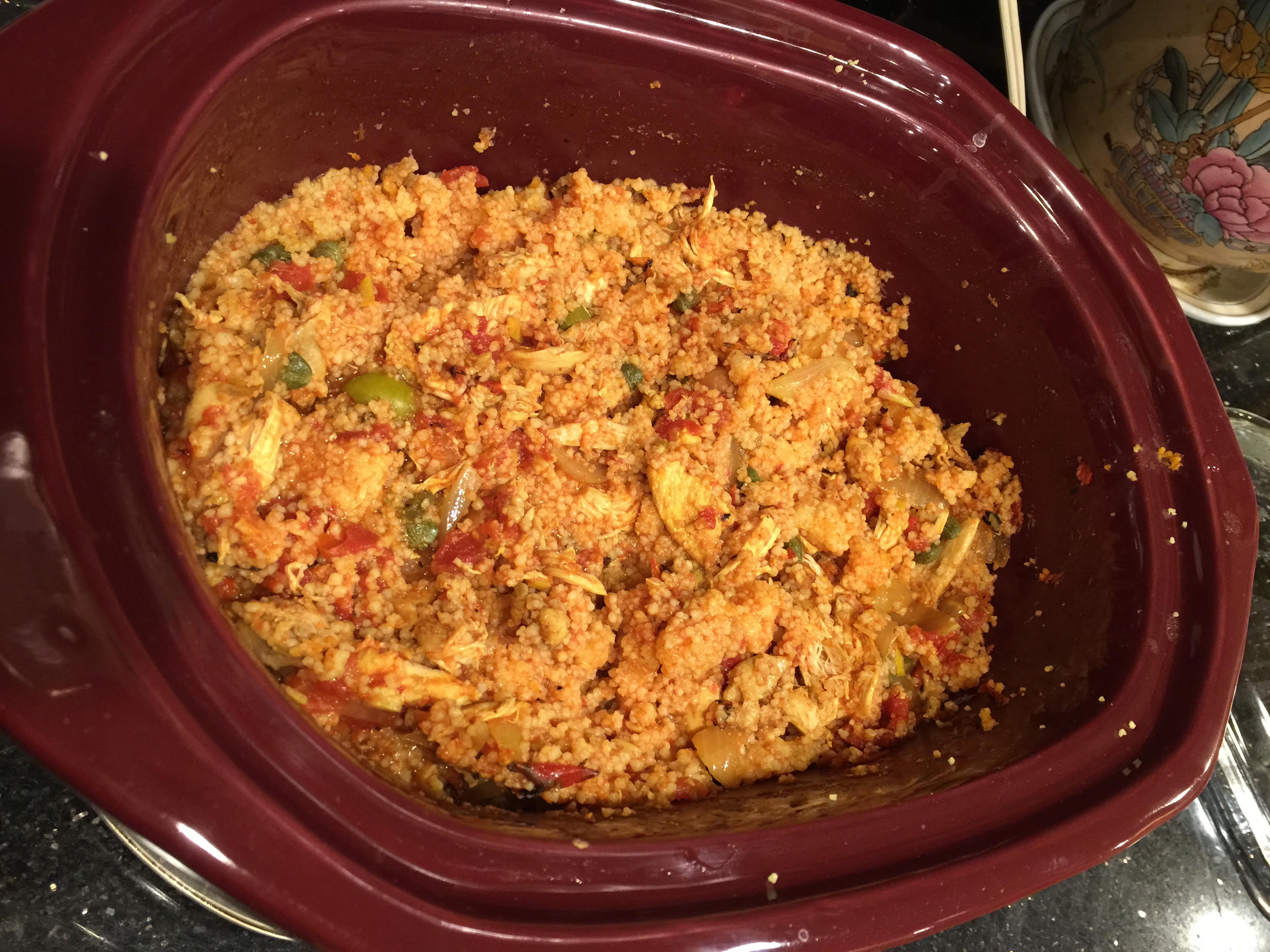 - Mix the cooked couscous into the slow cooker mixture and let it all heat for about 30 minutes. Then serve with chopped or sliced almonds on top