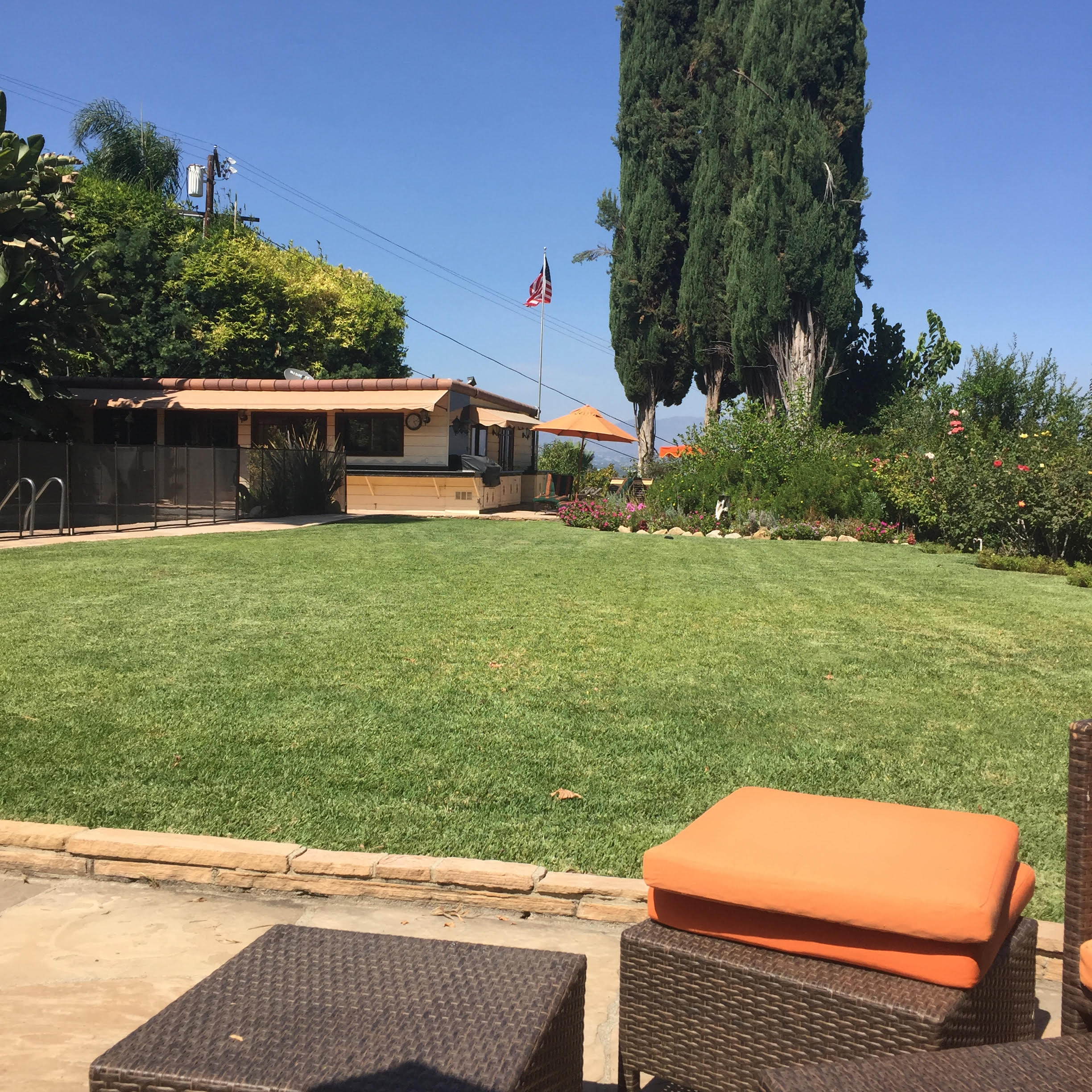 This gorgeous photo of our back lawn may soon be just a memory as we put down gravel and paving – and cactus. Is California turning into Arizona?Green back lawn at Little Farm September 2016