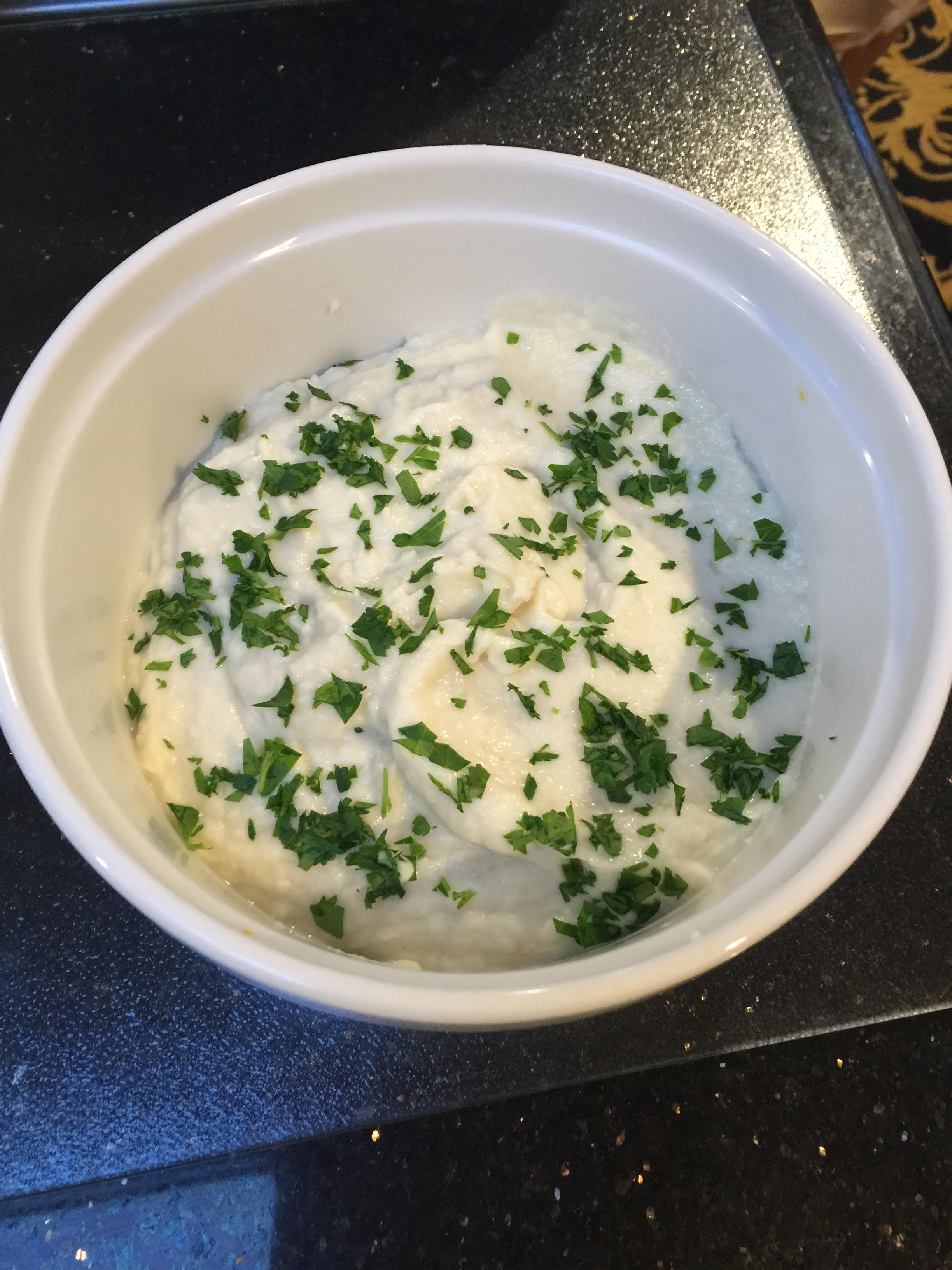 Cook the cauliflower heads in boiling water with a dash of salt until soft. Drain and add to blender till smooth.