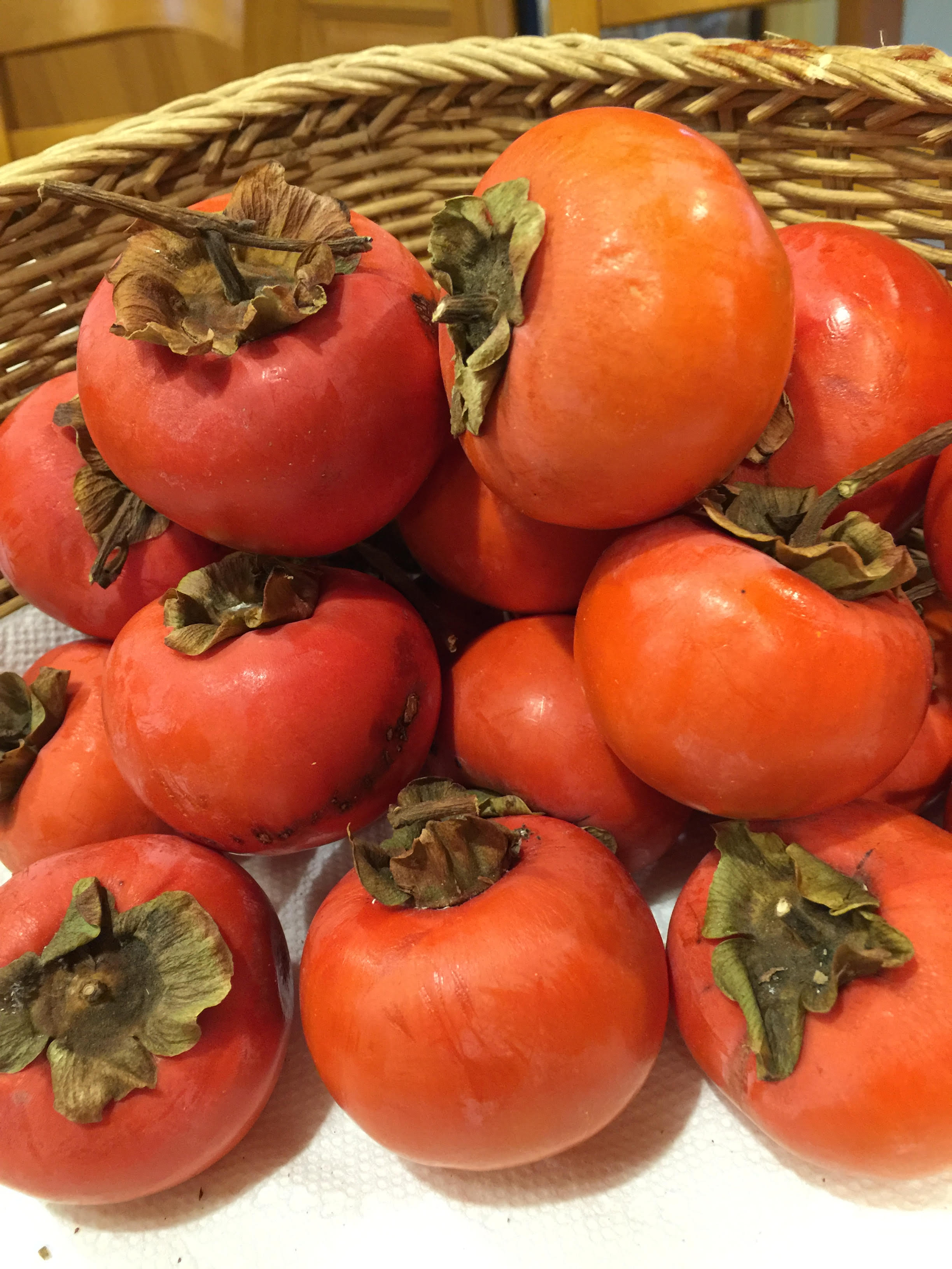 Persimmons are great in fruit salad, eaten on their own, in persimmon pudding or persimmon bread. Here is a great recipe – enjoy