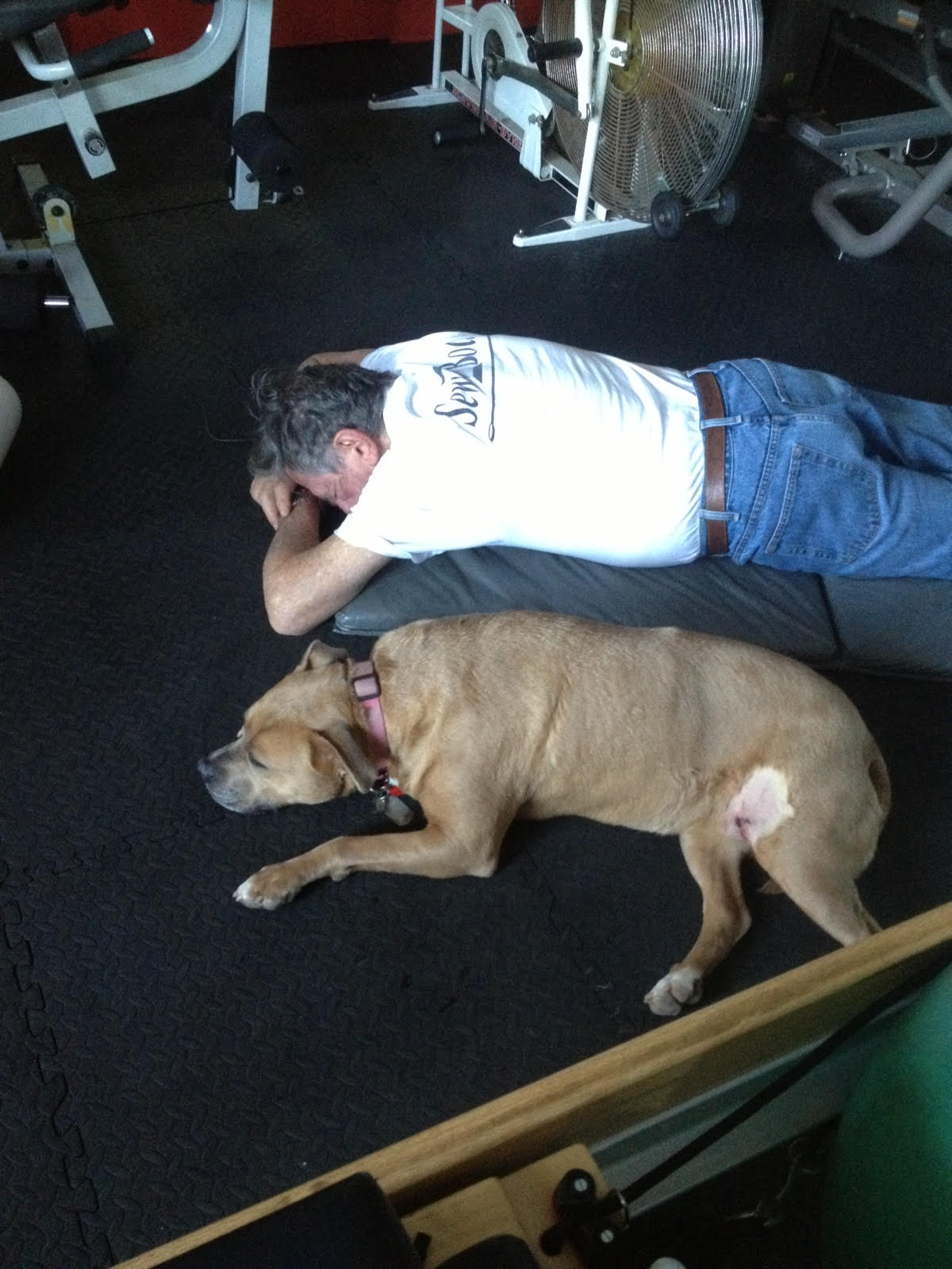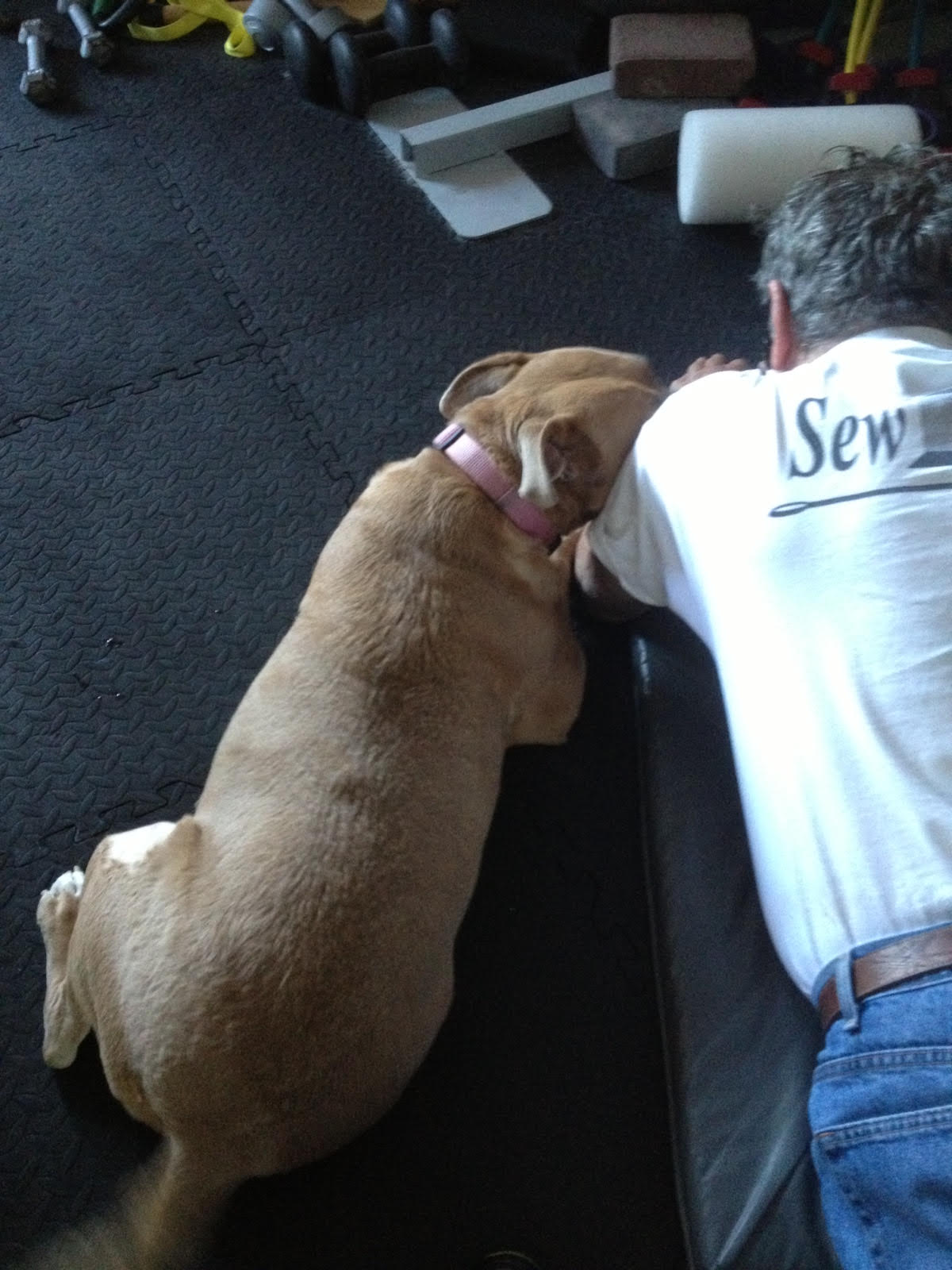 My husband and dog both worked out with our trainer Mike – and were both pretty pooped after it.